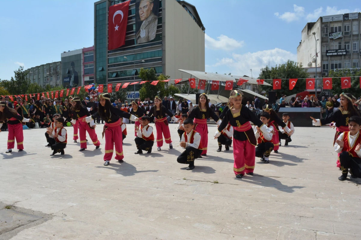 Tören alanını dolduran çocukların sergilediği halk oyunları, şiir dinletileri ve jimnastik gösterileri izleyicilerden tam not aldı. Rengarenk kıyafetleri ve ellerinde Türk bayraklarıyla bayramın ruhunu yansıtan öğrenciler, izleyenlere duygu dolu anlar yaşattı.